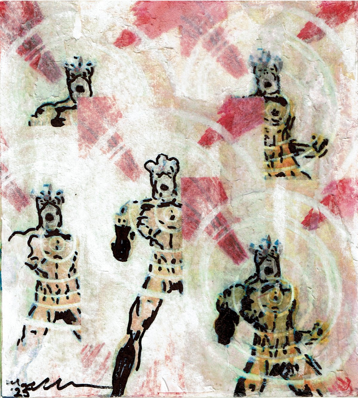 Measuring 5.5" x 6", this piece features a repetition of Markham’s original Havok All Over, part of his Marvel X-Men tribute series. The distressed transfer process gives each print subtle texture and depth, while retaining the energy and dynamic composition of the original artwork.