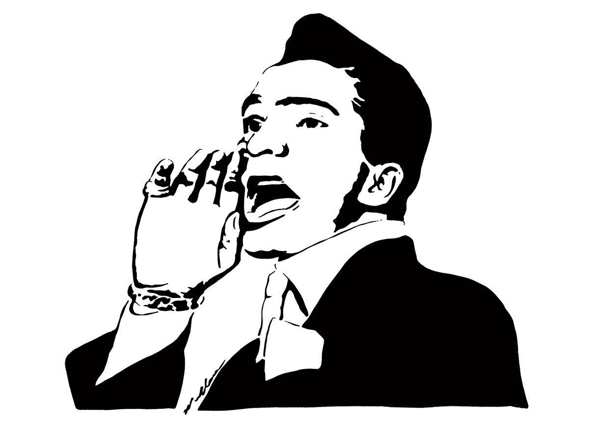 The artwork captures the powerful energy and stage presence of Jackie Wilson, one of soul music’s greatest voices. Markham uses bold black spray paint to create a high-contrast, graphic portrait that reflects Wilson's dynamic and magnetic performances.